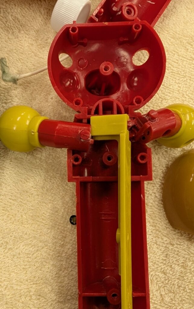 お手々パタパタ部分のプラの軸や軸受けも結構ダメージがありましたが、なんとか再生。