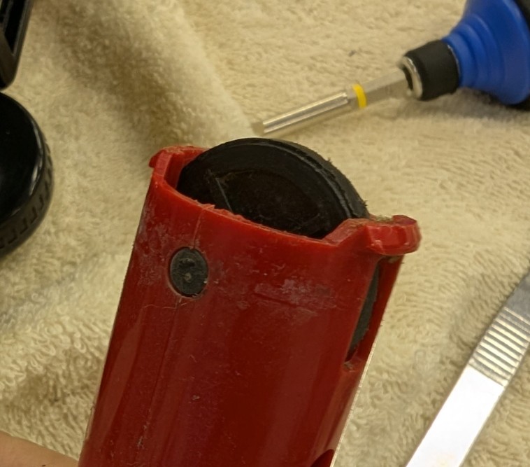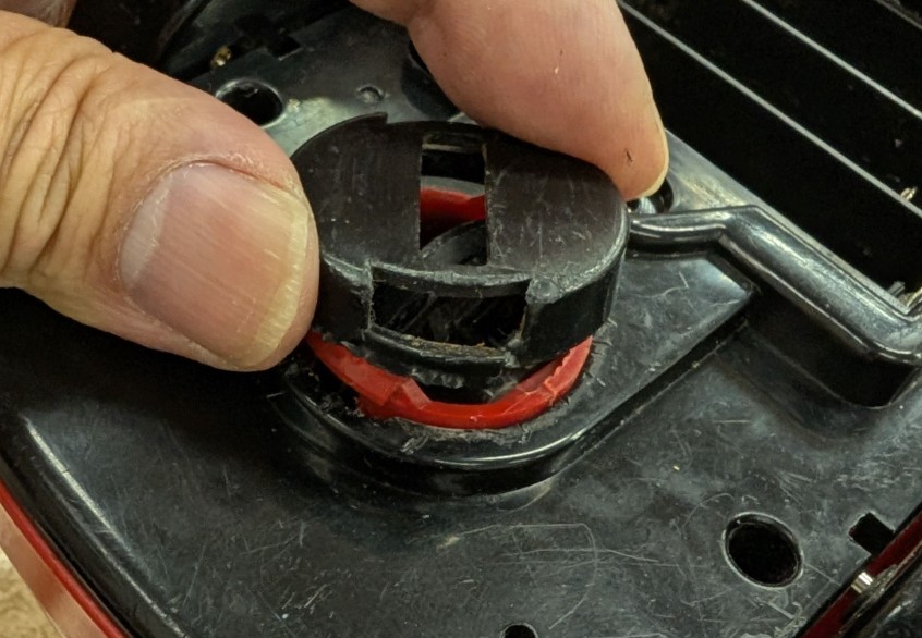 お手々パタパタさせるためのタイヤのゴム伸びて劣化(ビヨーン)ですが、そんな都合のよい交換部品は無いぞと思ったのですが、プラレールの車輪のゴムがなんとかはまりいい感じに。長期では劣化しますが仕方がない。交換するには上のお手々パタパタ部分の接着したあたりを再度剥がして交換ですね。
